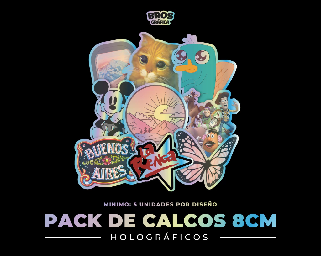 Calcos impresos y troquelados DE 8 CM HOLOGRÁFICOS con tecnología UV